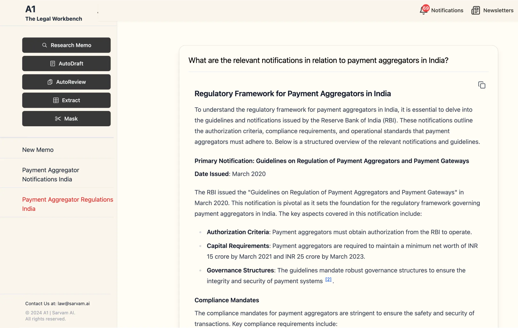 Get the edge over regulations and case laws by with real time notifications baked right into A1. Chat with Regulations, Case Laws and Other legal documents from regulators and courts.